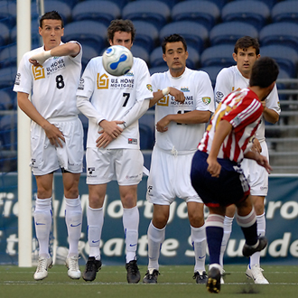 A couple minutes later, a long-distance Galindo shot deflected off the fingertips of a diving Eylander and hammered off the crossbar. It would be Galindo’s last play of the night, as Chivas U.S.A. coach Preki didn’t want to exhaust his leading scorer.