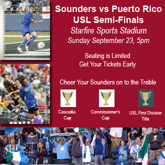 The opening match will be played in Puerto Rico, Friday, September 21 at 5pm Seattle time and will be available through USLLive.com. The Sounders home leg will be at Starfire Sports Entertainment Complex on Sunday, September 23 with kickoff at 5pm. Seating for the match is limited and fans are encouraged to get their tickets in advance for $15 through SeattleSounders.net. If tickets are available the day of the game, they will be $18 at the gate.