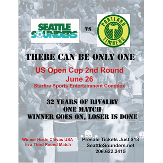 The Seattle Sounders face the Portland Timbers in the Second round of the Lamar Hunt U.S. Open Cup on June 26, 7 PM at Starfire Sports Entertainment Complex.